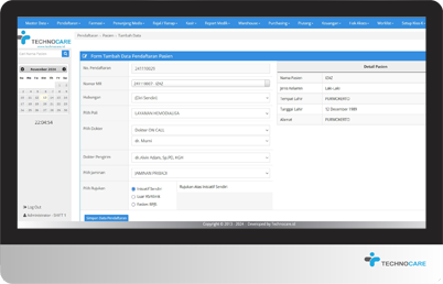 Fitur atau Modul Registrasi Pasien, Pendaftaran pasien dilengkapi dengan pasien asuransi ataupun pasien umum dengan jaminan